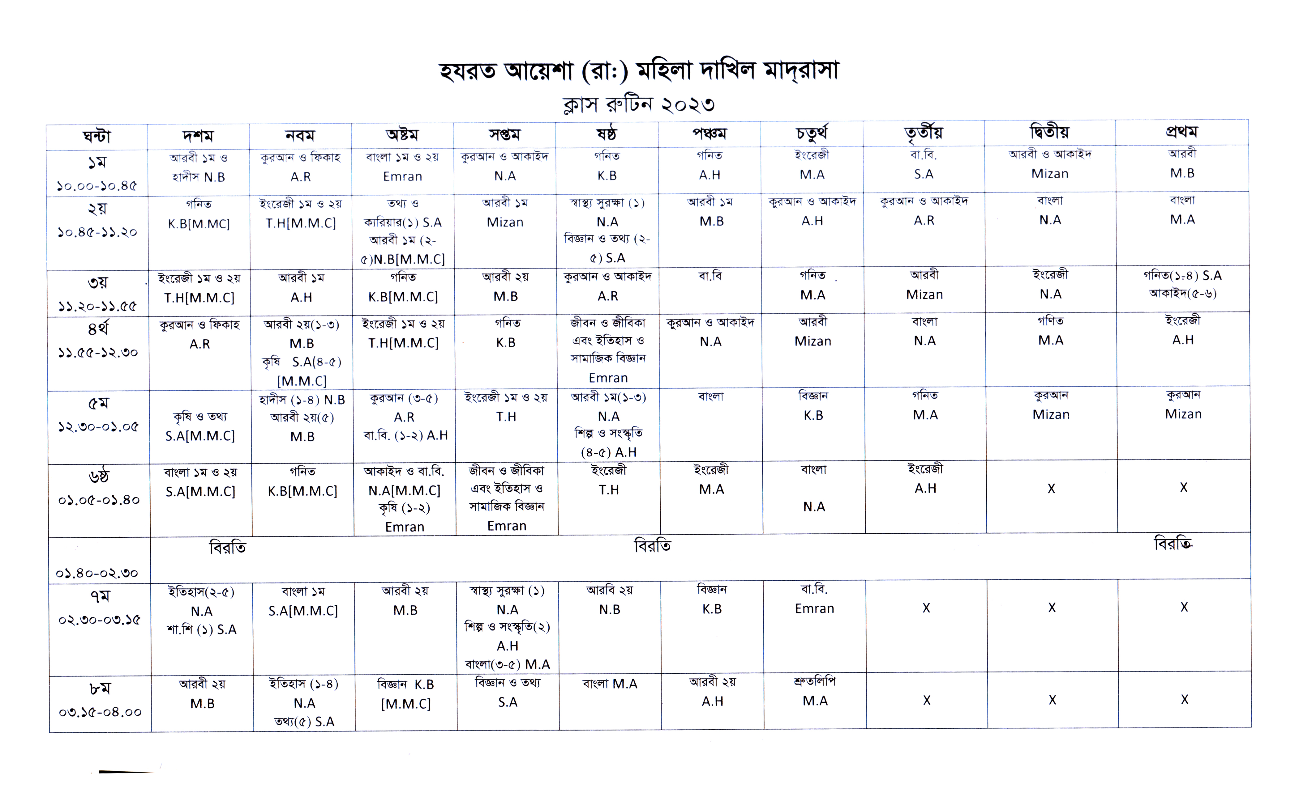 হযরত আয়েশা (রাঃ) মহিলা দাখিল মাদ্রাসা