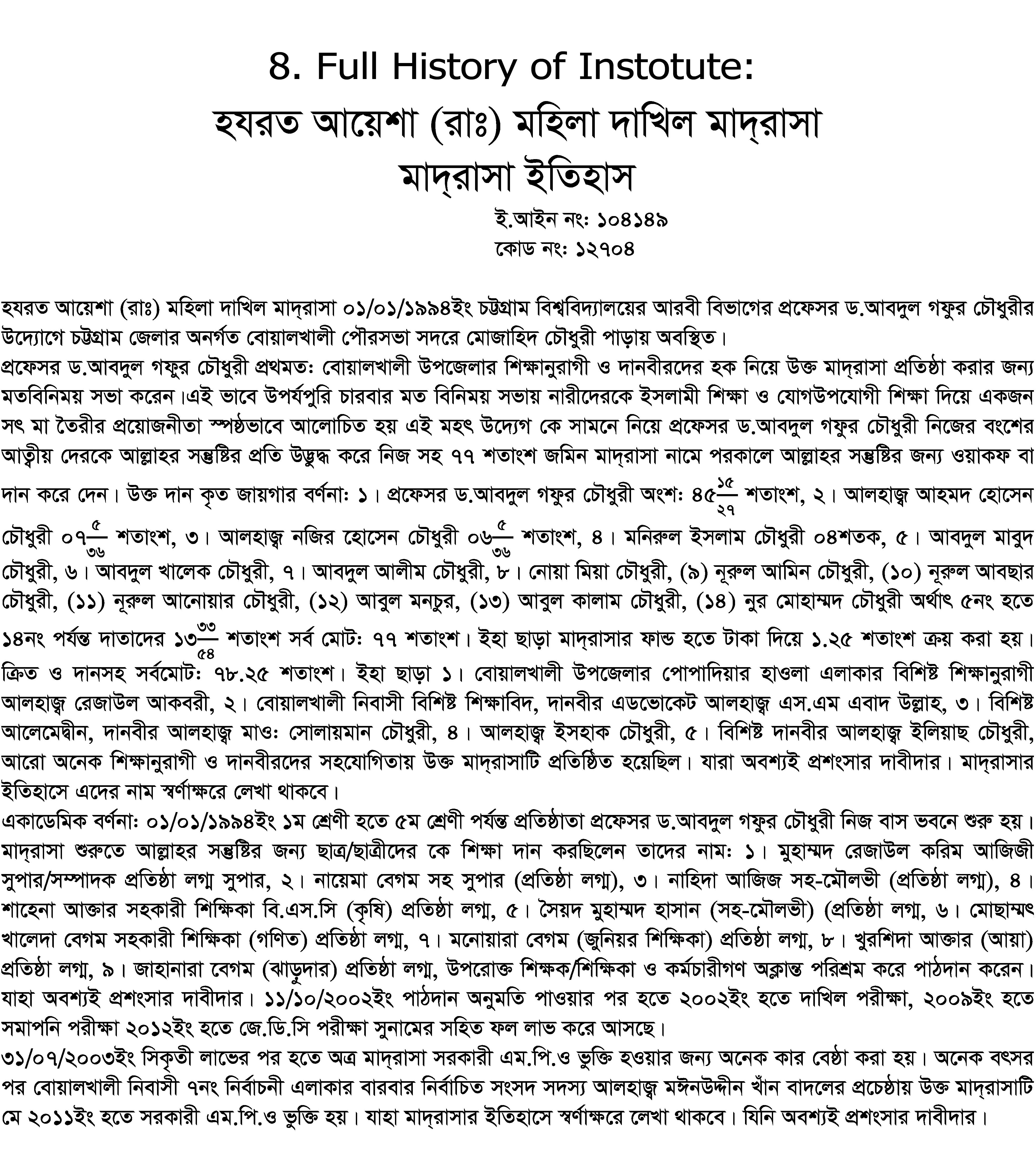 হযরত আয়েশা (রাঃ) মহিলা দাখিল মাদ্রাসা